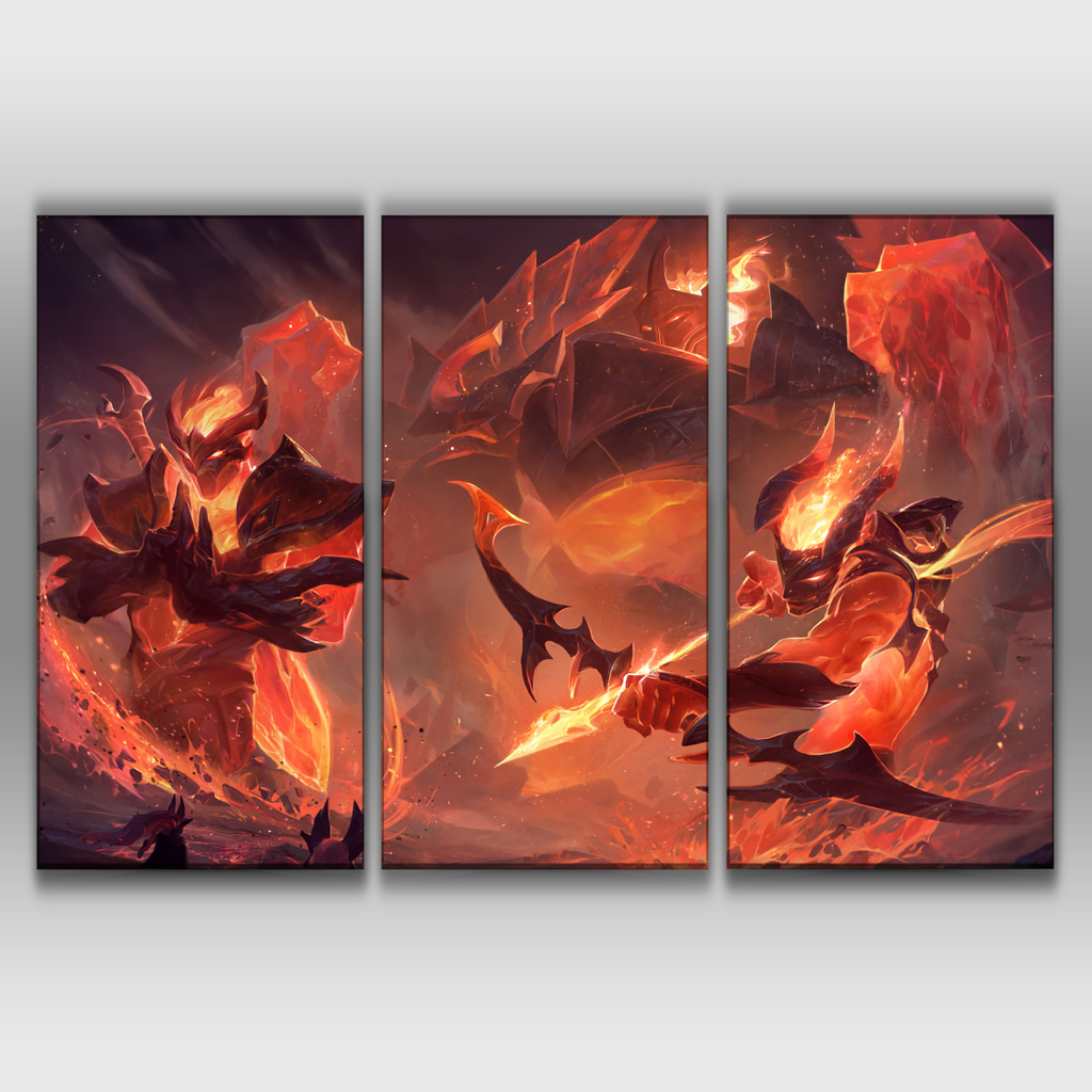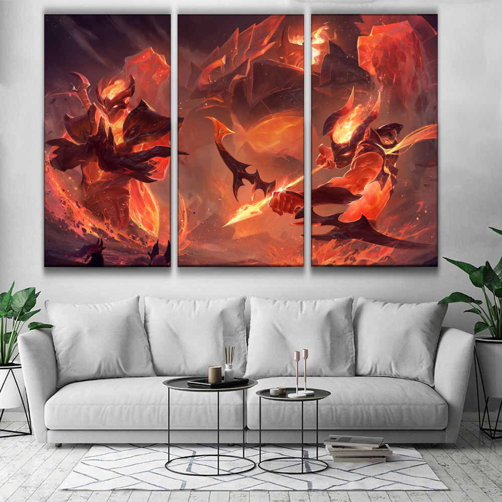 Brand Name: League of Store Type: Canvas Posters Subjects: Infernal Shen, Galio and Varus Frame mode: Framed or Unframed Form: League of Legends online game |