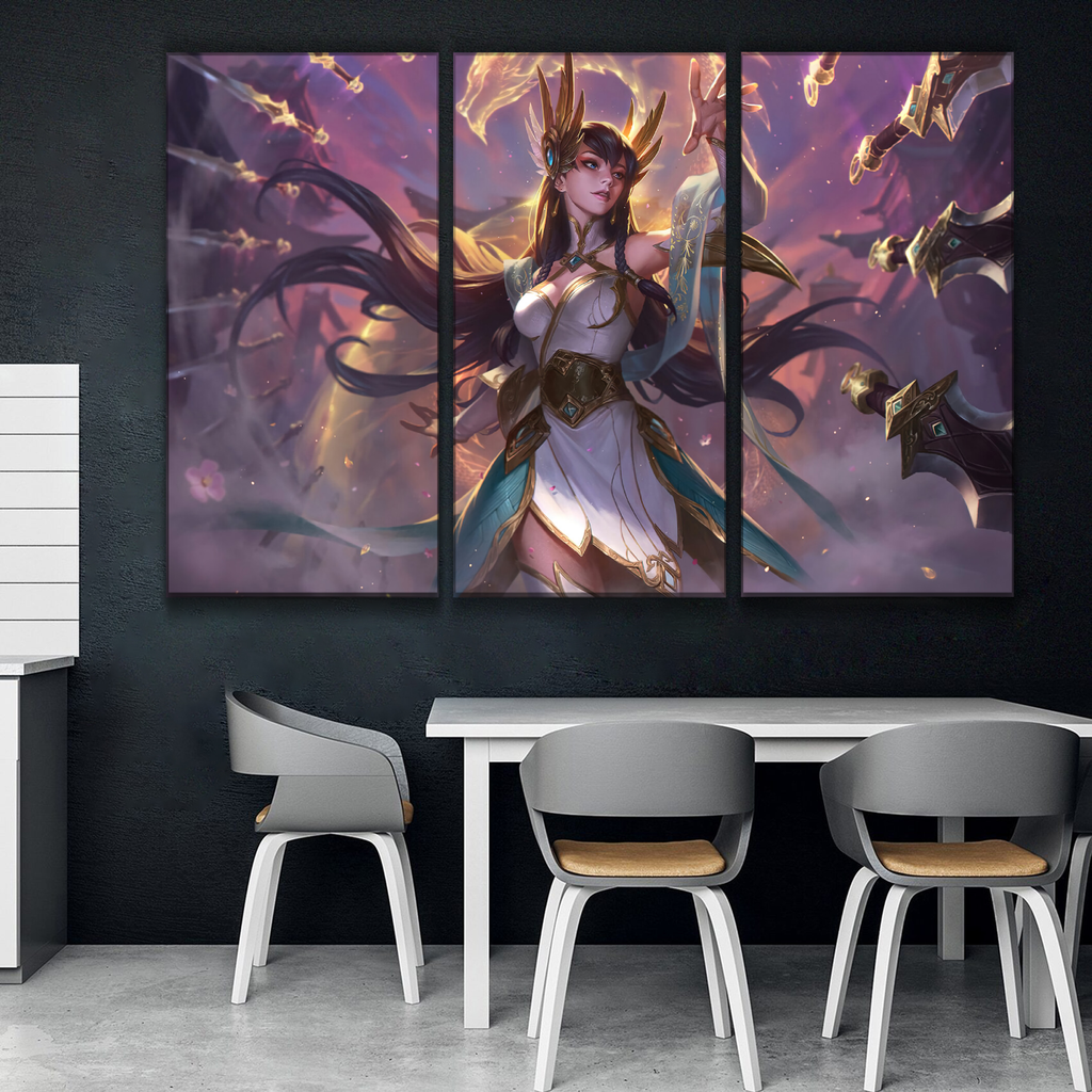 Style: LOL Champion Support Base: Canvas Model Number: ASD8845 Technics: Spray Painting Shape: 3 Panels Wall Poster |