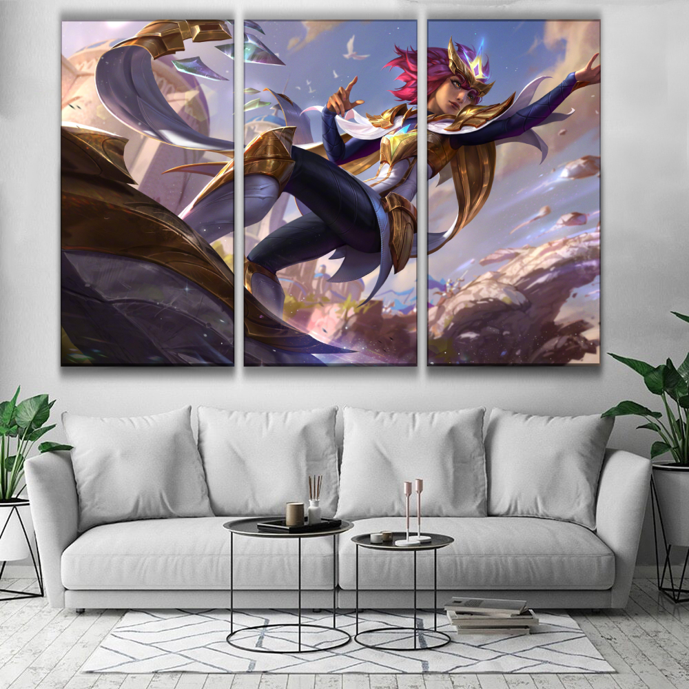 Style: LOL Champion Support Base: Canvas Model Number: ASD8845 Technics: Spray Painting Shape: 3 Panels Wall Poster |
