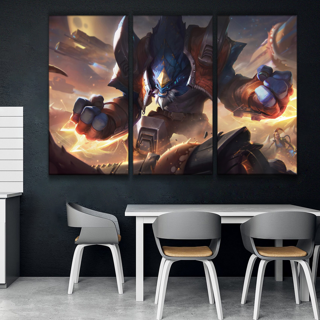 Style: LOL Champion Support Base: Canvas Model Number: ASD8845 Technics: Spray Painting Shape: 3 Panels Wall Poster |