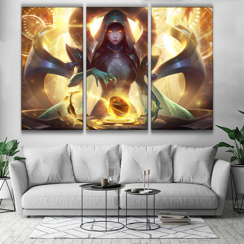Style: LOL Champion Support Base: Canvas Model Number: ASD8845 Technics: Spray Painting Shape: 3 Panels Wall Poster |