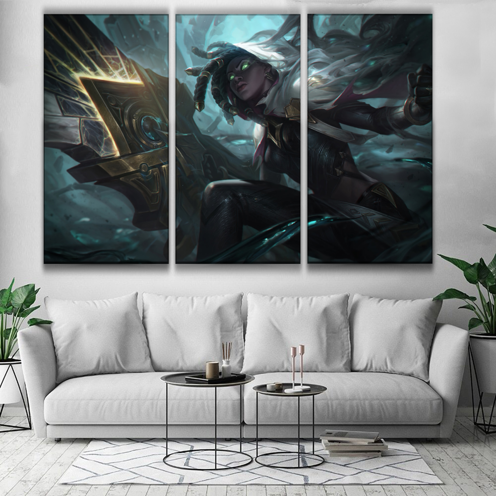 Style: LOL Champion Support Base: Canvas Model Number: ASD8845 Technics: Spray Painting Shape: 3 Panels Wall Poster |