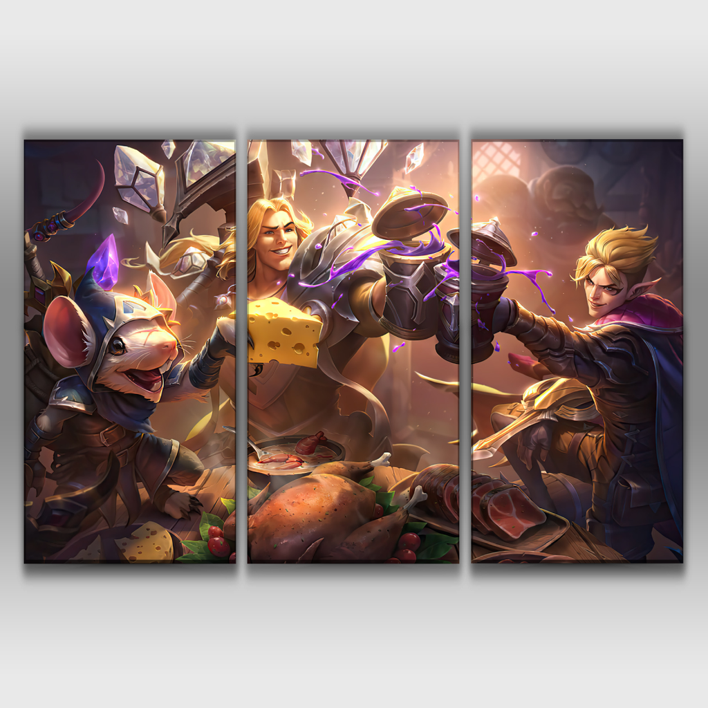 Style: LOL Champion Support Base: Canvas Model Number: ASD8845 Technics: Spray Painting Shape: 3 Panels Wall Poster |