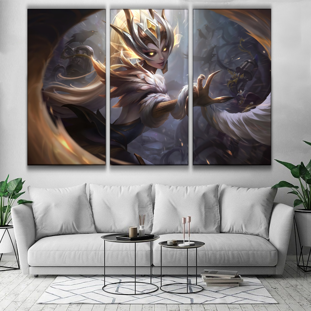 Style: LOL Champion Support Base: Canvas Model Number: ASD8845 Technics: Spray Painting Shape: 3 Panels Wall Poster |